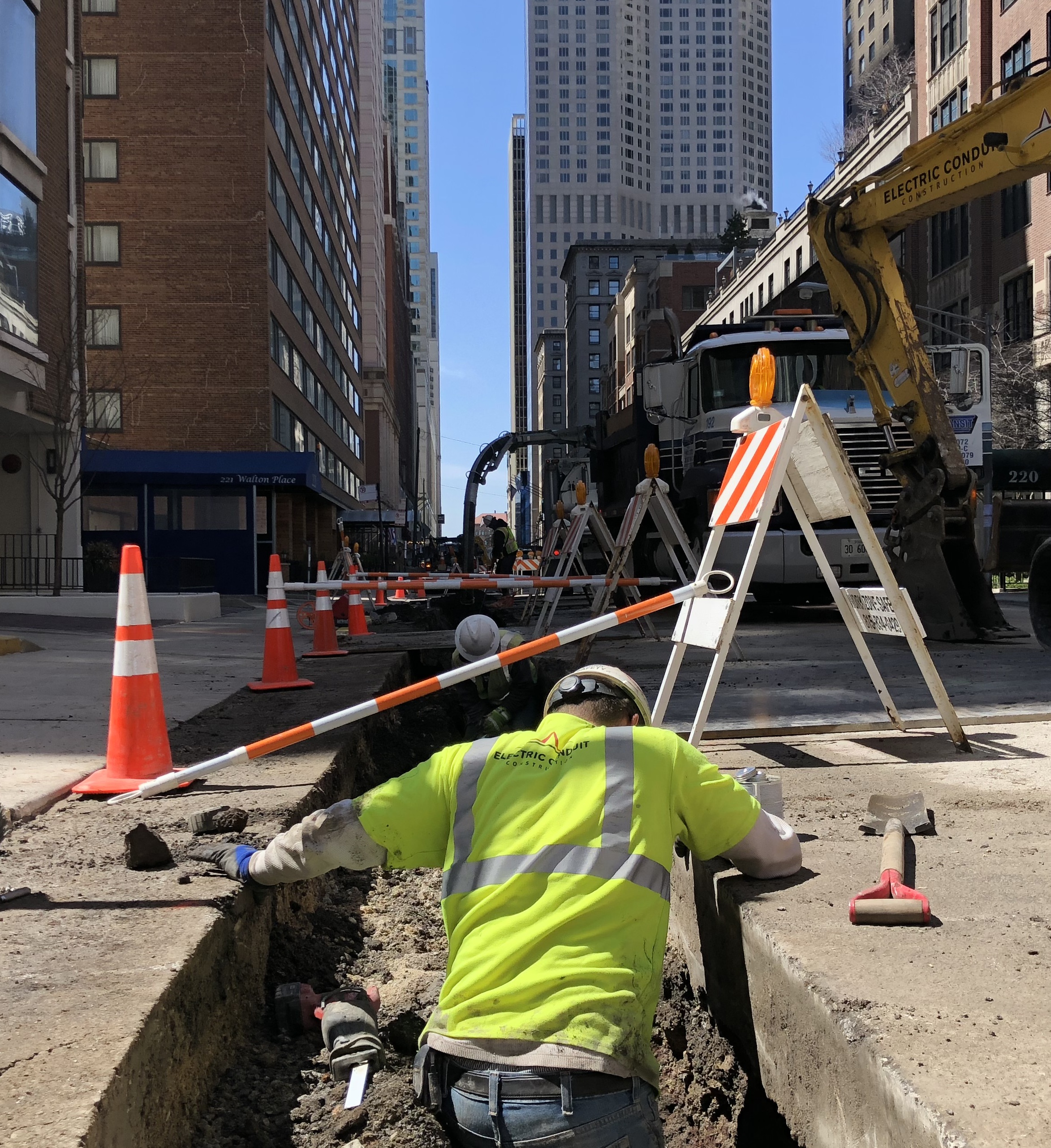 For over 50 years Electric Conduit Construction (ECC) has built underground utility infrastructure for power and communication companies. The world has moved into fiber optic cable but the earth is as unyielding as ever and the work to install anything underground is more complex. ECC works in the heart of major cities, suburban environments and rural settings. Our award winning utility damage prevention programs and protocols have won us recognition for safe excavation in the most difficult of circumstances. ECC generates over 100,000 dig tickets each year. Our crews are very thorough and may experience one or two strikes on a marked utility in a year’s worth of excavation.