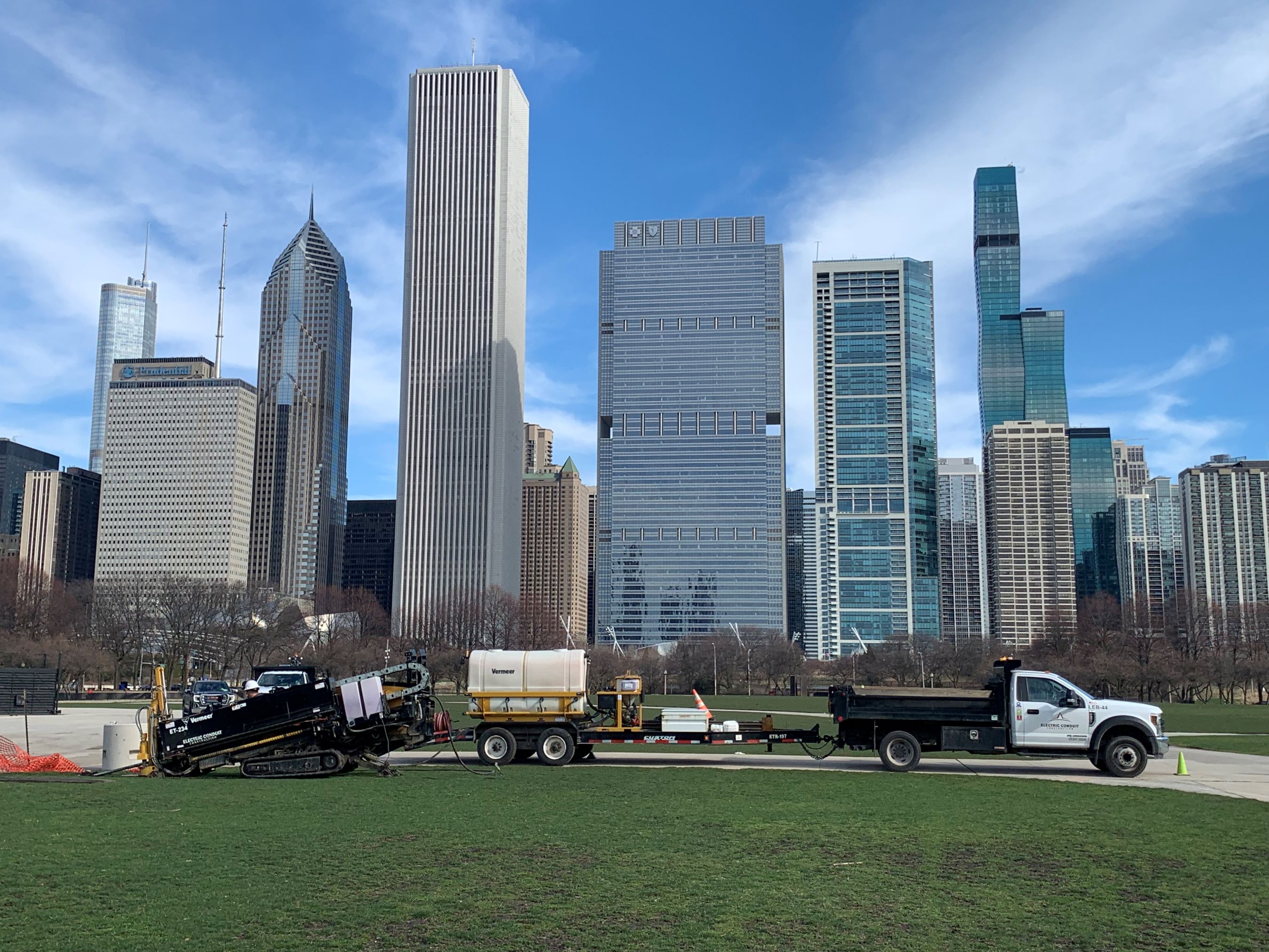 The City of Chicago and NASCAR have set up a 2.2-mile (11,616 ft.), 12 turn, twisting racetrack on the lakeshore and through parts of downtown. This will be an exciting race that is expected to draw over 100,000 fans. Each one will have a cell phone and will want to instantly send photos, videos, and text messages. Mobile phone carriers do not want their customers to experience delays in data transmission and to that end have awarded Electric Conduit Construction (ECC) the task of increasing reception and data transmission capacity ahead of this singular event. The challenge on this project was to drill and place over 24,000 ft. of conduit, fiber, and power. The equivalent of over 2 laps and make it all work.