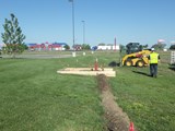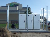 Installation of these systems is straightforward and involves standard underground construction methods and electrical wiring. From the utility supplied transformer conduit is trenched into the switchboard and power control center. On this pad the breakers, transformers and inverters are placed and wired together with conduits running underground between the electrical equipment.