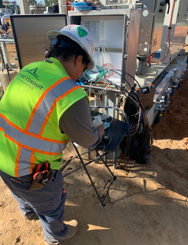 Electric Conduit Construction (ECC) provides fiber optic installation services to all types of utility infrastructure, including, solar generating sites, electrical sub-stations, EV charging systems, telecommunications data centers, and pipelines. Electric Conduit Construction plays a key role in adding resiliency to the control systems by installing, testing, and terminating fiber optic cable for devices and communications.
