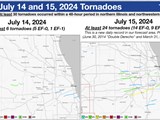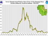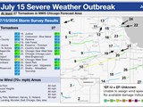 Derechos are fast moving storm fronts generating 50 to 100 mph winds and spinning off tornadoes as they move through an area. Northern Illinois and the Midwest are subject to this type of weather. While records were set for the number of tornadoes the bulk of the damage was done by the straight-line winds of the Derecho. The following graphics show the path of the Derecho, the direction and path of subsequent tornadoes and information about wind speeds.Click on any image to enlarge weather data.