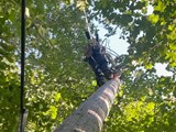 Repairing storm damaged electrical infrastructure is the most challenging type of electrical work from the standpoint of safety. Crews must maintain a heightened sense of situational awareness. Broken and downed trees can hide energized power lines. Trees and branches may be hung in the canopy and can fall at any time bringing power lines down with them. The strategy is to work safely first. This means that every task is a process of determining that the overhead wires are de-energized, clearing trees, overhanging trees, and broken poles. Then reestablishing service. This includes poles, transformers, overhead wires, and secondaries.