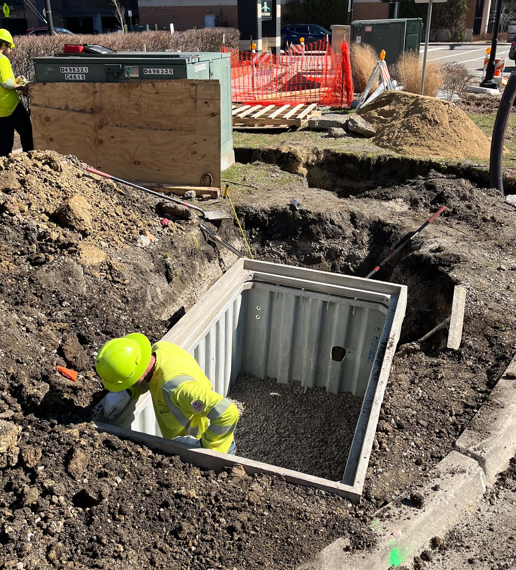 Electric Conduit Construction underground crews are trained to avoid damaging foreign utilities when installing underground infrastructure by open cut or horizontal directional drilling methods.